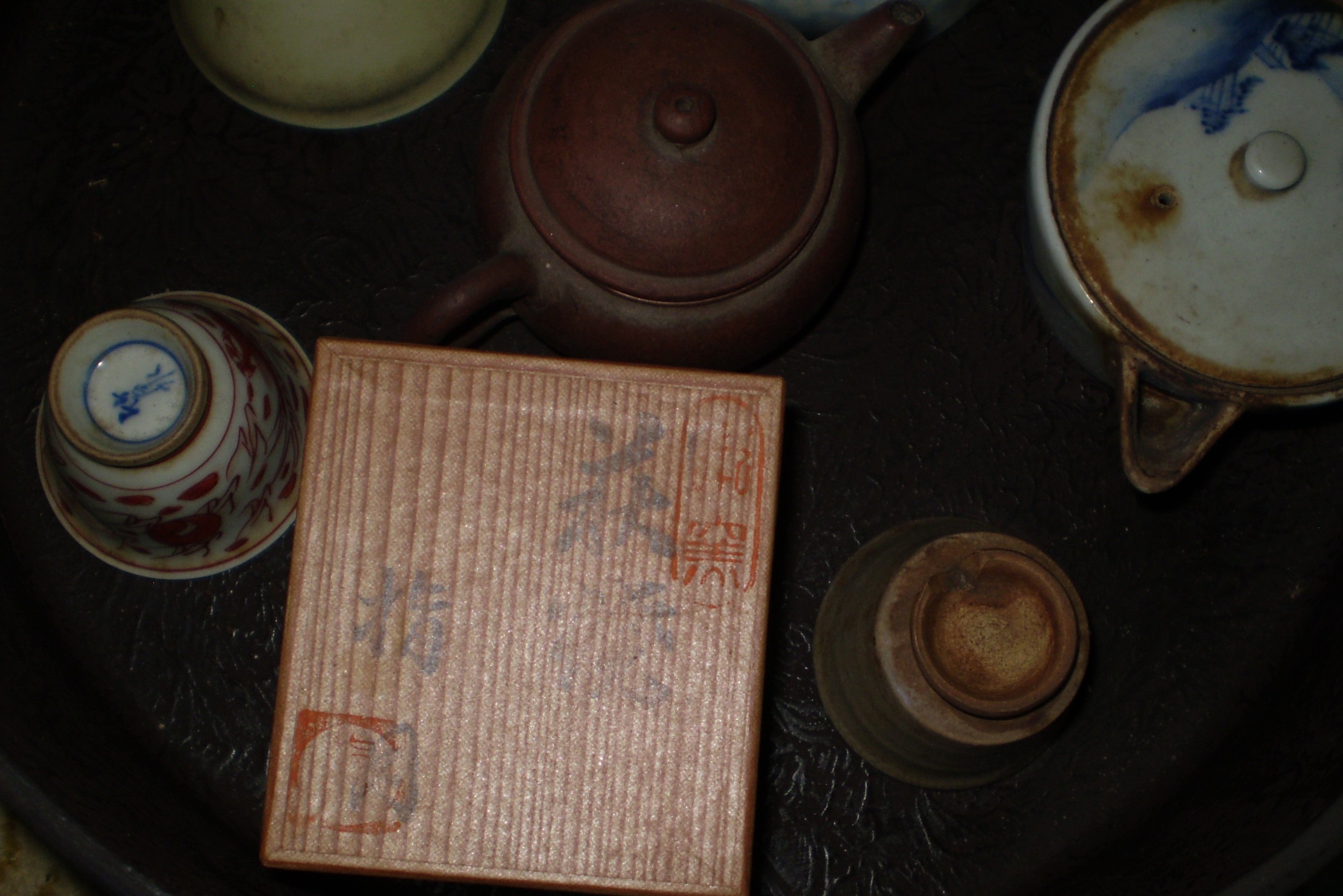 茶櫃・泡瓶(ホウヒン)・急須・湯冷まし・茶碗(朝日焼・竹泉(京焼)・萩焼など)です。 私の子供の頃は祖父が、祖父が亡くなった後は父がとても大事に、大切に使っておりました。 父が建てた家の応接間に置いてあり、大事なお客様があった時に使用していたものです。 |