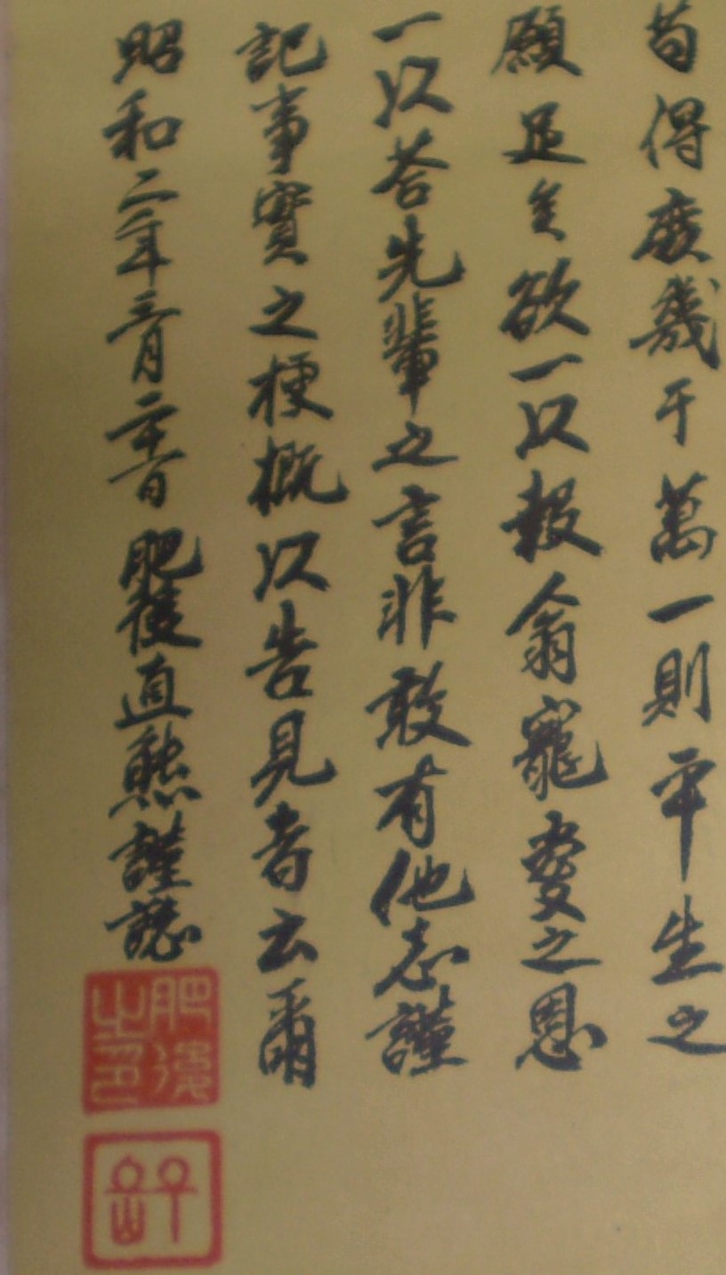 源定の寶書の掛け軸です。 ************************************************************************* アップ時は「源定寶の書」というタイトルでしたが、ご意見をいただき、「源定の寶書」に改めました。 平安時代初期から前期の公卿とのことです。大変立派な書ですが、内容は不明です。 また何かわかりましたら、報告したいと思います。 |