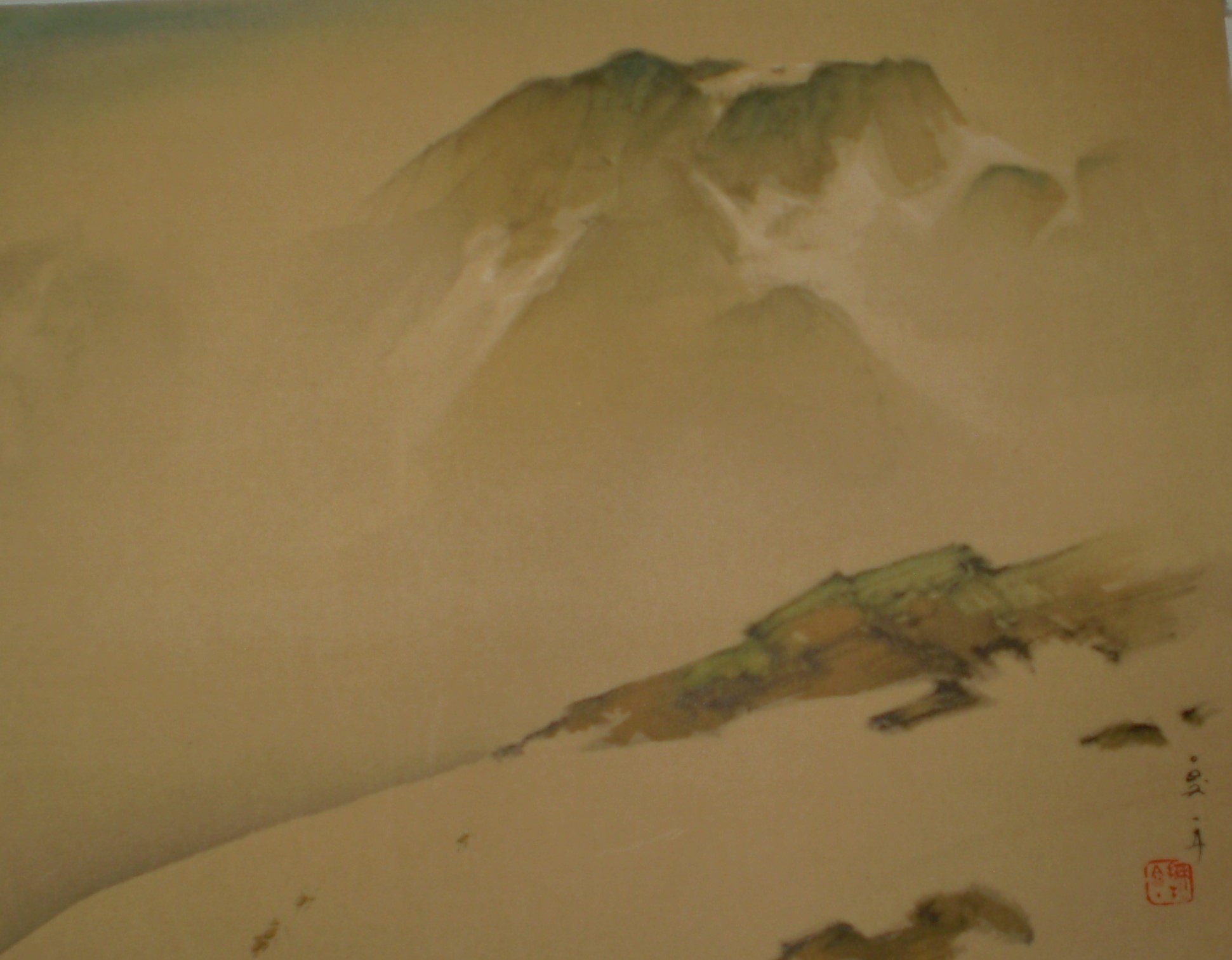 これも無学で絵師は解読できません。 山岳の絵ですが、画題も絵師も読み取る力がなく大変残念です。 わかる方がいらっしゃればお教え下さい。 |