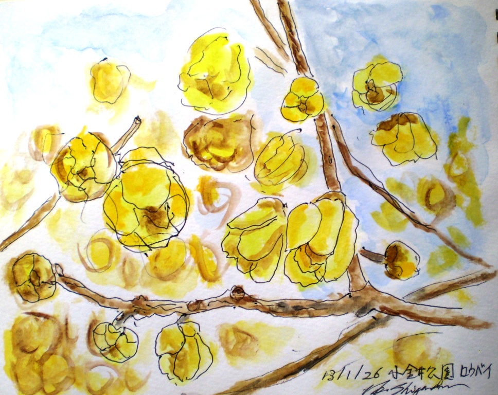 2013/1/26 小金井公園のロウバイ (2〜3m離れてご覧ください) |