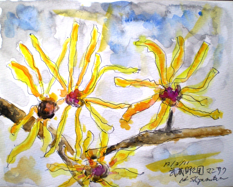 2013/2/11 武蔵野公園のマンサク (2〜3m離れてご覧ください) |