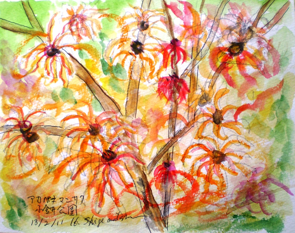2013/2/11 小金井公園のベニバナマンサク (2〜3m離れてご覧ください) |