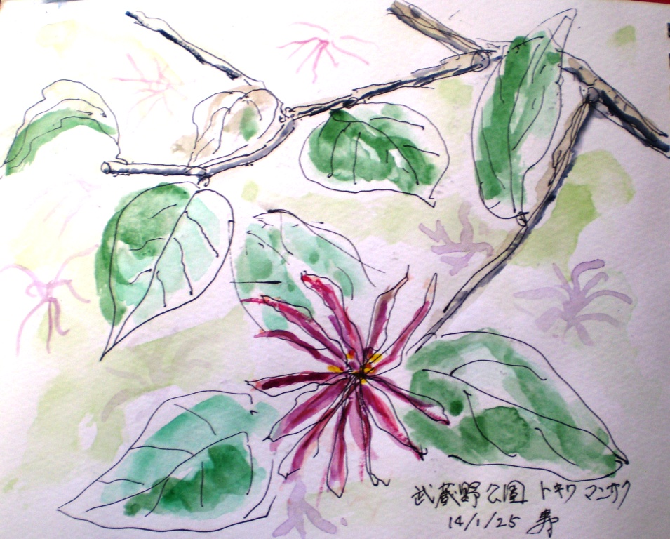 2014/1/25 武蔵野公園のトキワマンサク (2〜3m離れてご覧ください) |