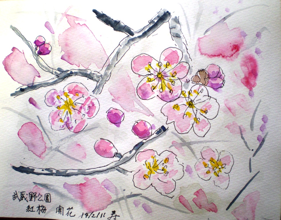 2014/2/11 武蔵野公園の紅梅 (2〜3m離れてご覧ください) |